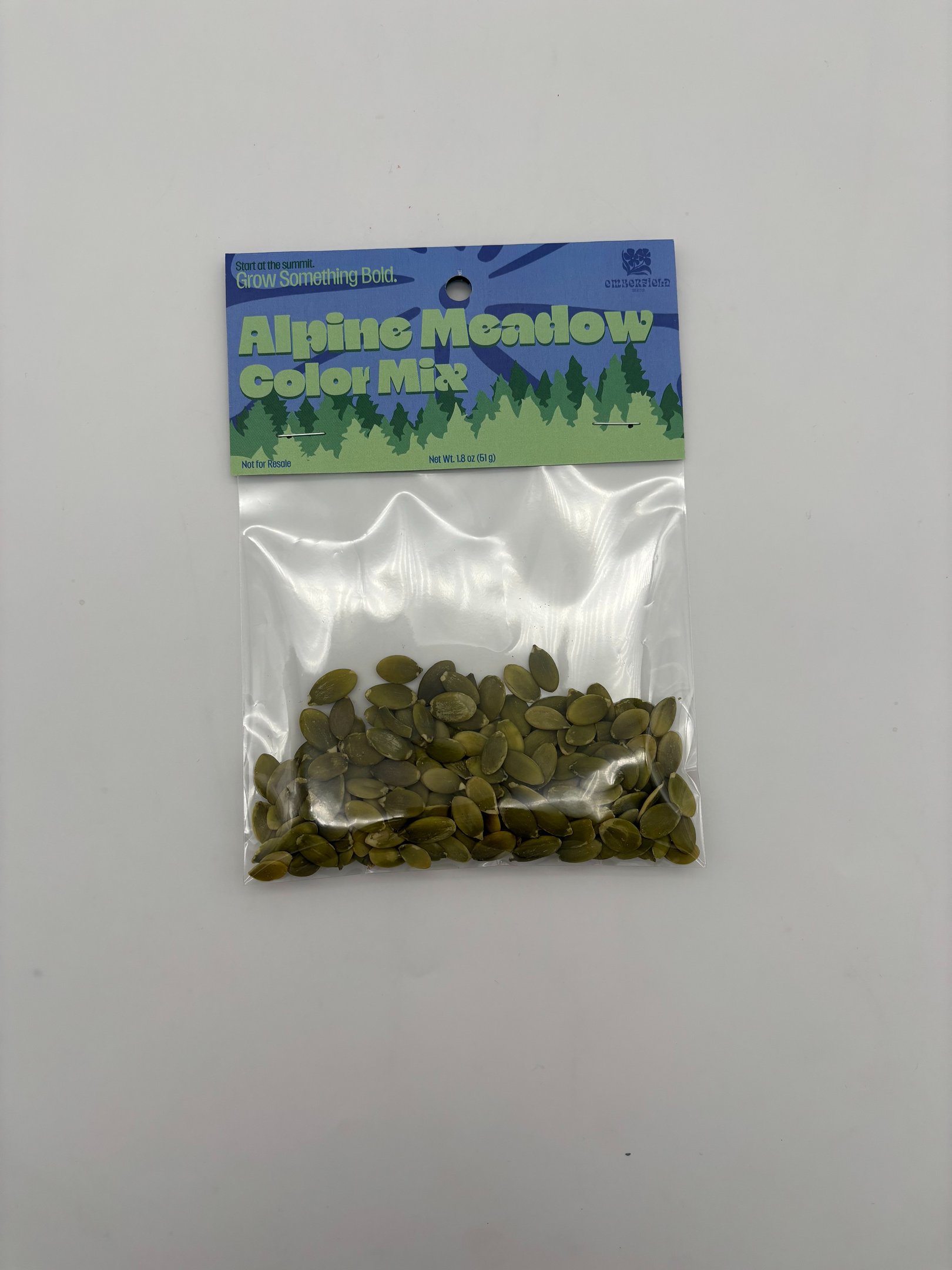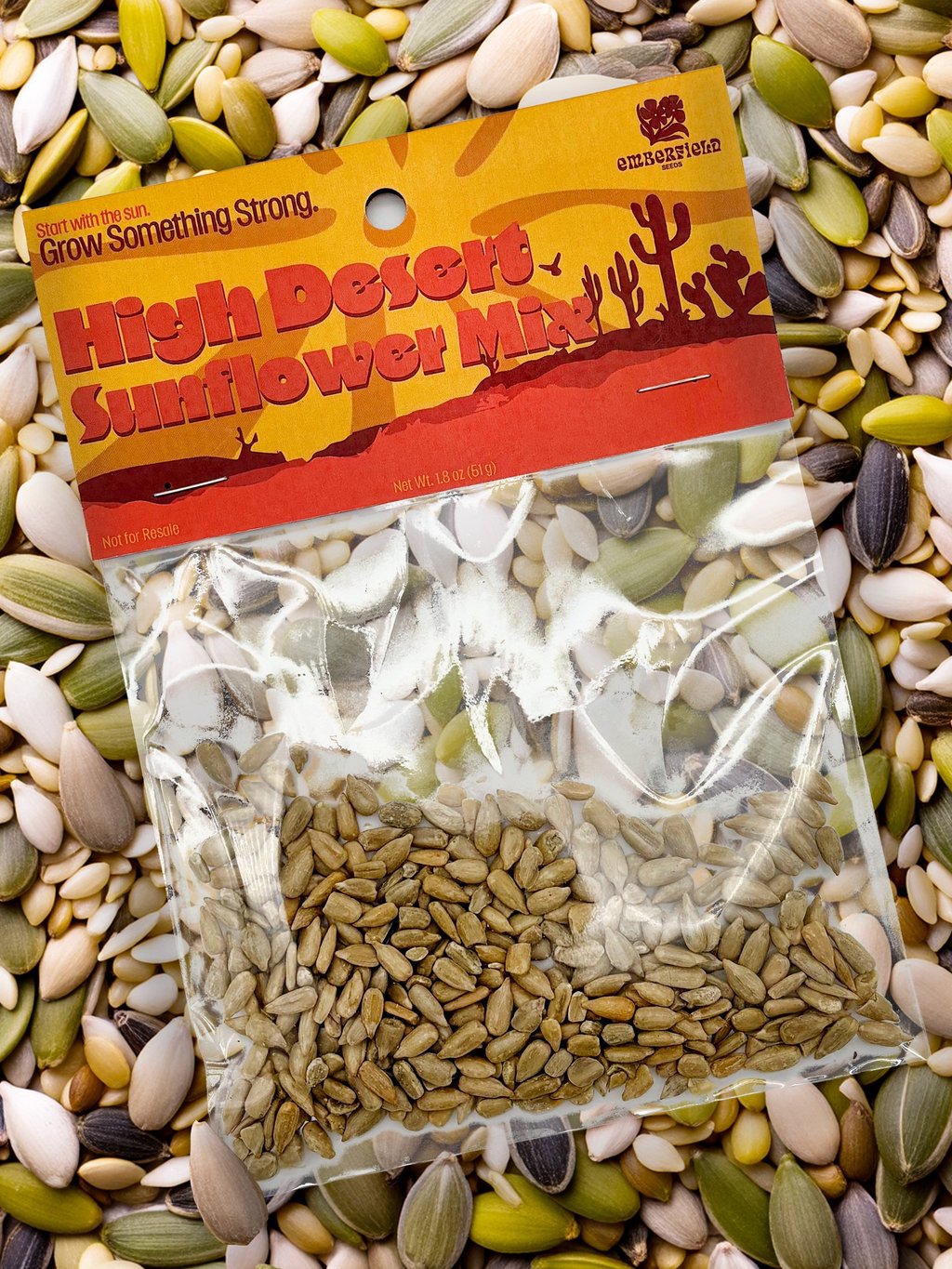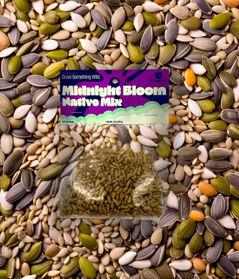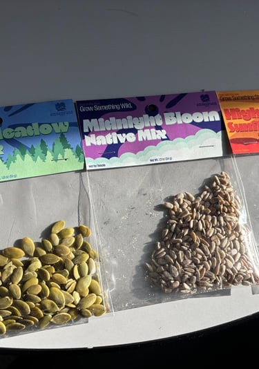 For the Header project, I designed three product headers for small plastic seed bags. I created a fictional seed brand and developed three different varieties: Alpino Meadow, Midnight Bloom, and High Desert Sunflower. Each header was designed to visually reflect the character of the seed variety while still feeling like part of the same product line. The project involved creating the designs, printing them, and assembling physical mockups to see how the headers function and appear in a real packaging context.